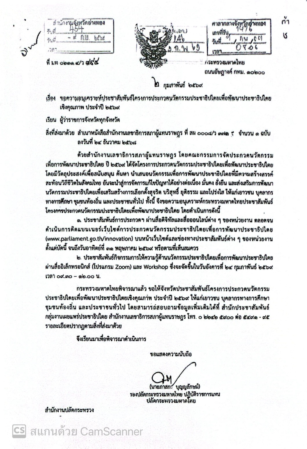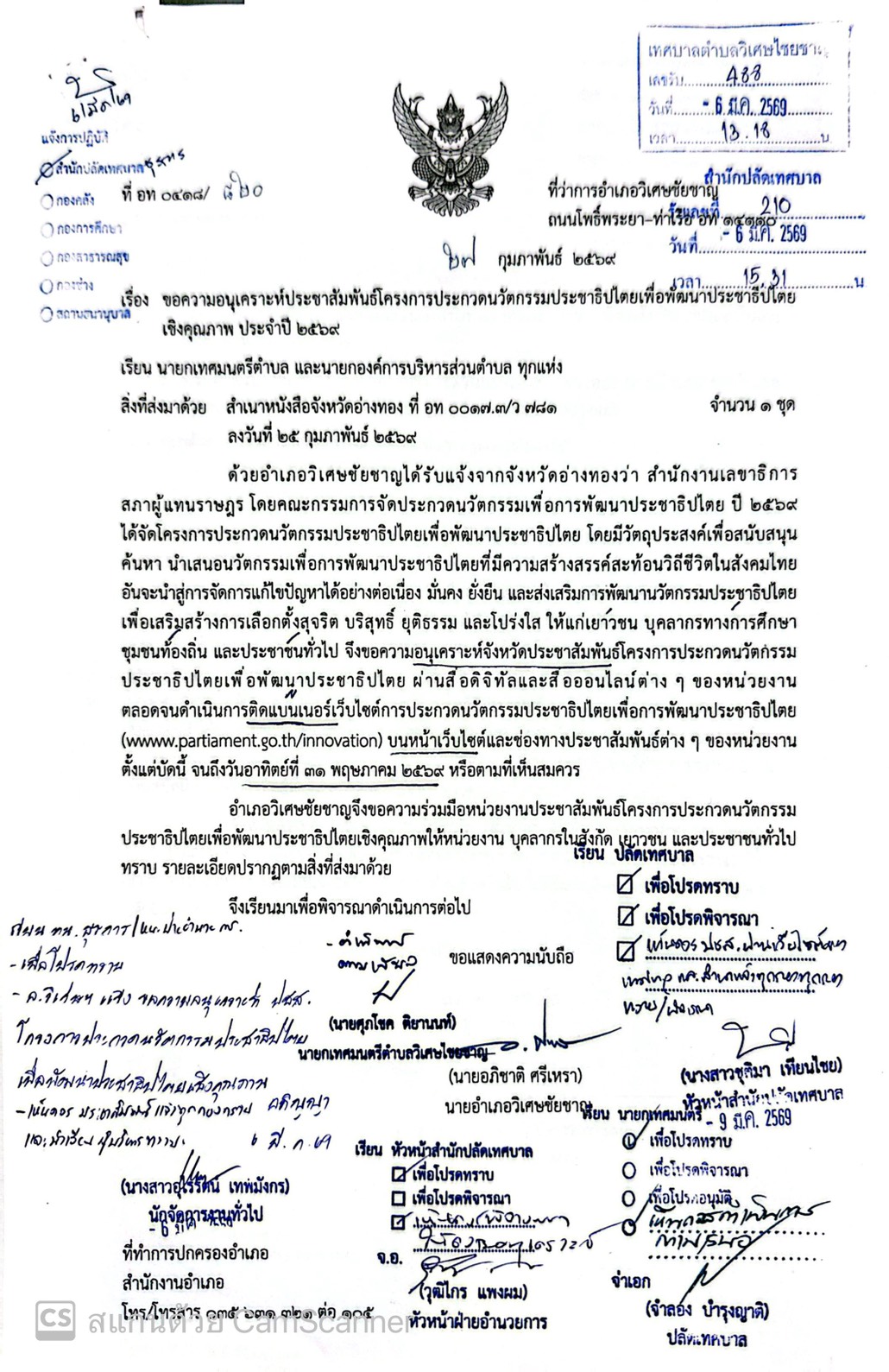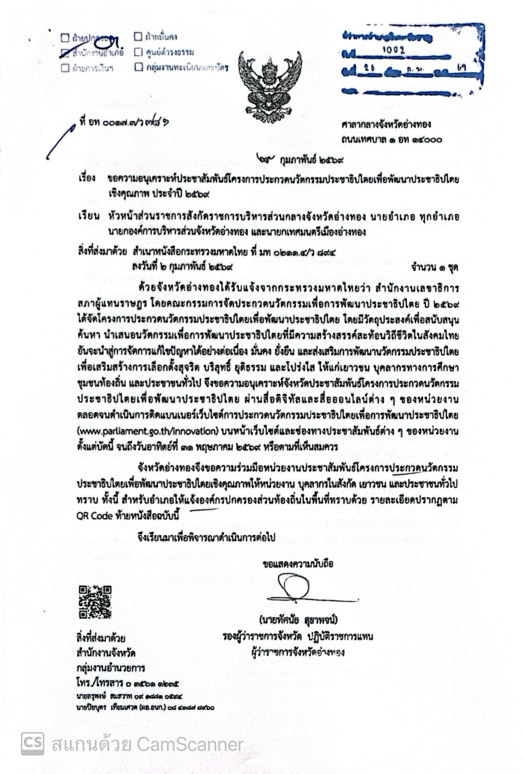 ขอความอนุเคราะห์ประชาสัมพันธ์โครงการประกวดวัตกรรมประชาธิปไตยเพื่อพัฒนาประชาธิปไตยเชิงคุณภาพ ประจำปี 2569 – ทต.วิเศษไชยชาญ จ.อ่างทอง …