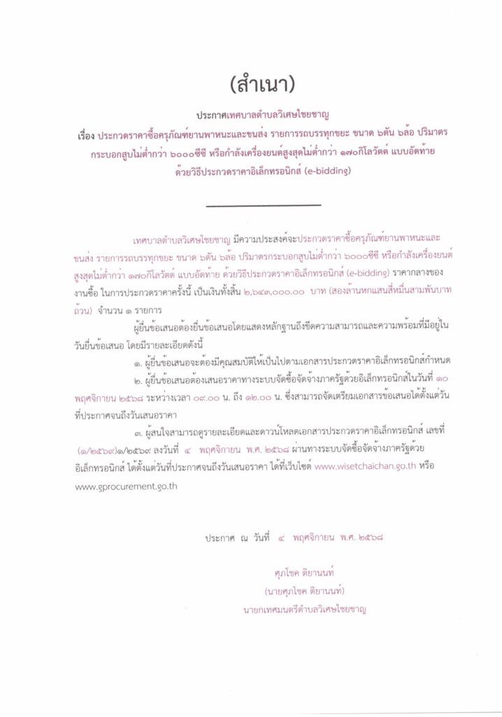 ประกาศประกวดราคาซื้อครุภัณฑ์ยานพาหนะและขนส่ง รายการรถบรรทุกขยะ ขนาด 6ตัน6ล้อ ปริมาตรกระบอกสูบไม่ต่ำกว่า 6000ซีซี หรือกำลังเครื่องยนต์สูงสุดไม่ต่ำกว่า 170กิโลวัตต์ แบบอัดท้าย ด้วยวิธีประกวดราคาอิเล็กทรอนิกส์ (e-bidding) – ทต.วิเศษไชยชาญ จ.อ่างทอง …