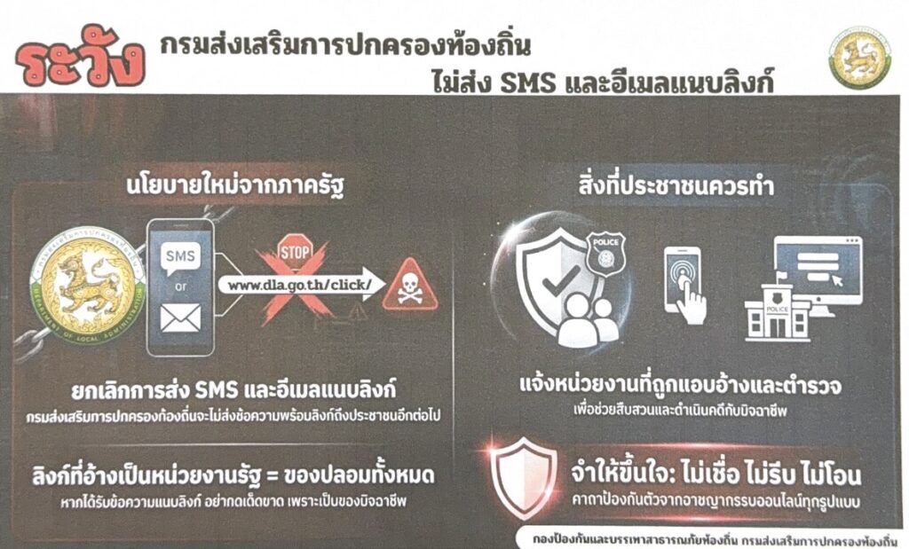 ประชาสัมพันธ์การปราบปรามอาชญากรรมทางเทคโนโลยี กรณีการส่ง SMS ที่มีการแนบลิ้งค์