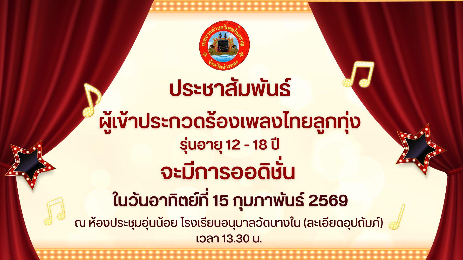 ประชาสัมพันธ์ถึงผู้ที่สมัครประกวดร้องเพลงไทยลูกทุ่ง รุ่นอายุ 12 – 18 ปี – ทต.วิเศษไชยชาญ จ.อ่างทอง …
